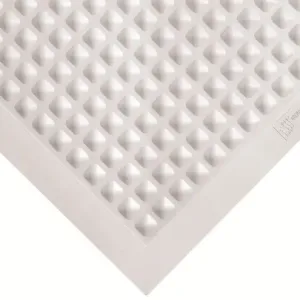 This high-performance autoclavable mat is ideally suited for use in sterile environments, such as operating rooms, medical laboratories, pharmacies, hazardous material areas, and other low-contaminant environments. This mat is constructed of a unique SBR/Nitrile compound, and treated with an anti-microbial additive, to ensure a non-porous, anti-bacterial surface that can be easily wiped down and can withstand frequent sterilization in an autoclave. In addition to its anti-microbial features, the exclusive domed nub design has excellent anti-fatigue properties for maximizing workers’ comfort.