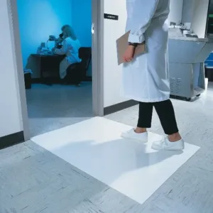 For the demanding work environment of a contamination-controlled clean room or hospital facility, we provide the high-performance Clean Room Tacky mat, an adhesive mat which removes contaminants, such as dirt and dust particles, borne by foot and wheeled traffic. These mats are configured to provide 30 peel-off, discardable sheets per mat, and are available in four mats per case. This highly practical design puts you in direct control of how many contaminants are allowed into your clean room environment.