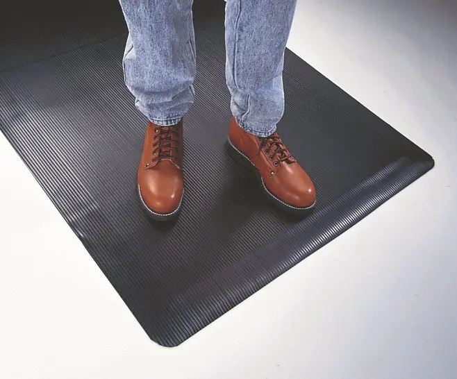 Our economical Comfort Pro anti-fatigue floor mat will be as comforting to your budget as it is to your workers during long periods of standing and stationary work activities. This affordable anti-fatigue floor mat is constructed of a corrugated vinyl top surface molded onto a patented Flex-Link™ sponge base. This highly-effective duo will provide a top surface which is resistant to abrasion and common industrial chemicals, and a base which provides the easy, supple comfort that will be needed for long periods of standing.