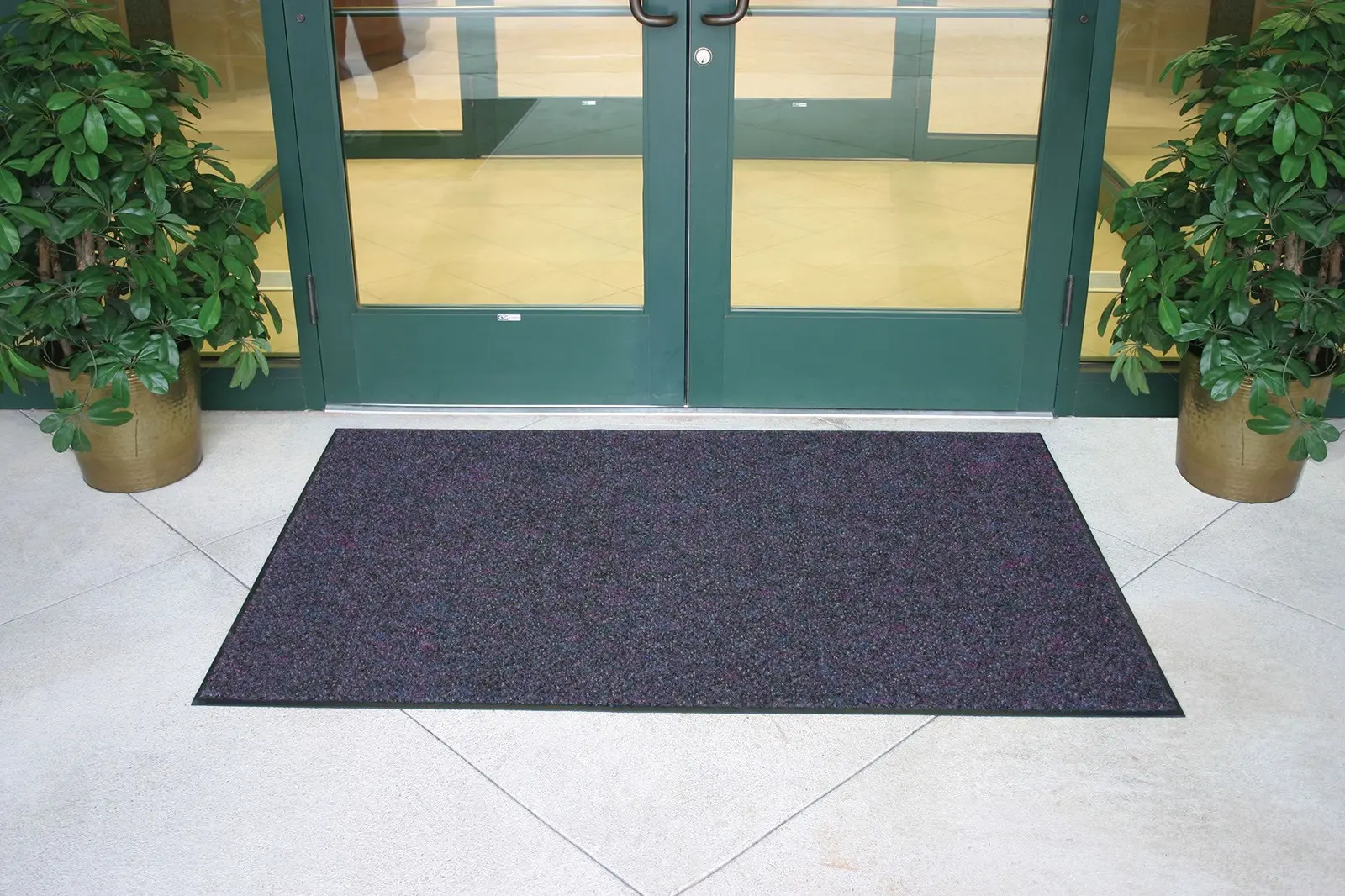This unique floor mat does a superb job of trapping and hiding dirt and debris in a choice of three speckled, dirt-concealing color schemes. This high-quality carpet surface is constructed of 100 percent solution-dyed, nylon twisted cut pile fibers, designed to remove heavy debris as well as fine dust and moisture. In addition, the carpet fabric is bonded to a premium Nitrile rubber backing to provide a safe, anti-skid surface that adheres to both hard surface and carpeted floors.